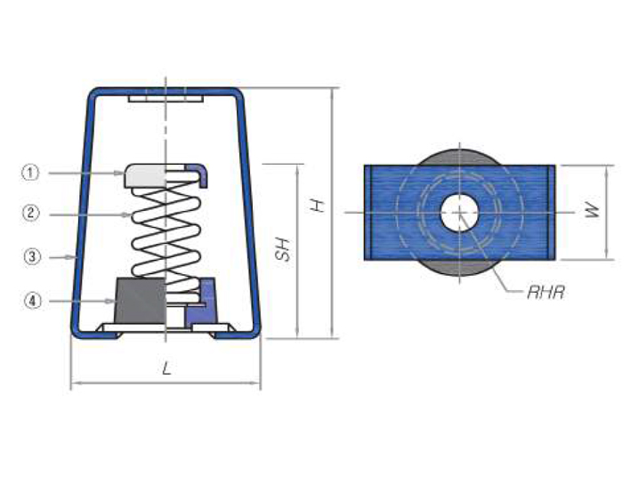 Ceiling에 매다는 방비의 행거로드나 닥트의 행거로드를 타고 진동이 건물구조체로 직접 전달될 수 없도록 행거로드 중간 부분을 절단하여 제품을 설치한 후에 진동을 차단하고 흡수하여 높은 방진효율을 가지도록 제작된 제품입니다.