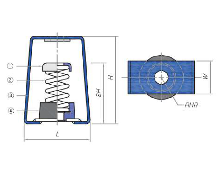 설치시 하중과 운전시 하중이 서로 다른 장비나 파이프 배관을 정해진 높이에 위치시키기 위해서는 운전시 하중에 해당되는 변위량 만큼 압축와셔를 사용하여 행거박스에 부착될 눈금자를 이용하여 미리 압축시켜 사용할 수 있는 제품입니다.