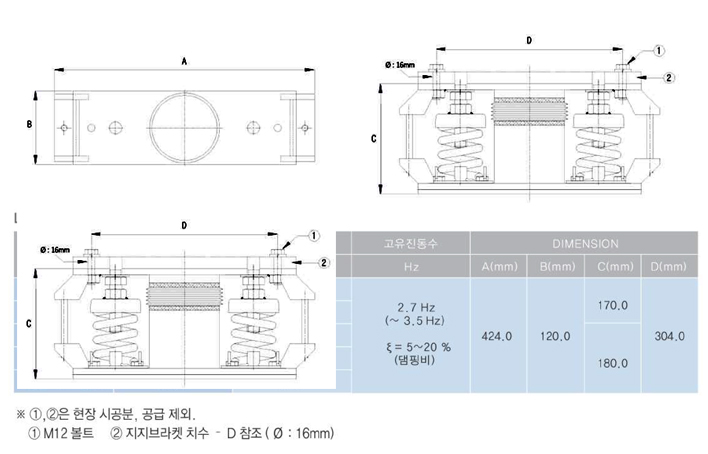 회전기계 및 정밀장비 등 중요지역인 경우 스프링 댐퍼 시스템을 시공하여 소음 및 진동, 충격의 전달을 효과적으로 방지 할 수 있습니다.